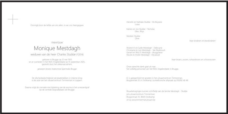 Op 15 september 2025 overleed Monique Mestdagh (mevrouw Stubbe, leerkracht economie, Frans, aardrijkskunde). Monique werd geboren op 31 mei 1935. Ze gaf les in Spermalie vanaf 1961 tot en met 1995.